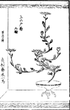 | 春秋軒一葉は、いけばなの遠州流すべての祖といわれているが、安永五年に記した書には足利候が定めた花の法則を、「床のあしらい、冠婚葬祭慶弔の花、また儀式や花器道具など」まとめたもので、花形はまだ理論的に確立されていない。 | 三世は初世の門人である園田氏が就任する。明治中頃まで活躍する。<挿花月之友より> | 四世はわずか宗家就任後三年で亡くなり、三世の息子である清吉が五世宗家を継ぐ。<大日本華道賓監より> | |||||